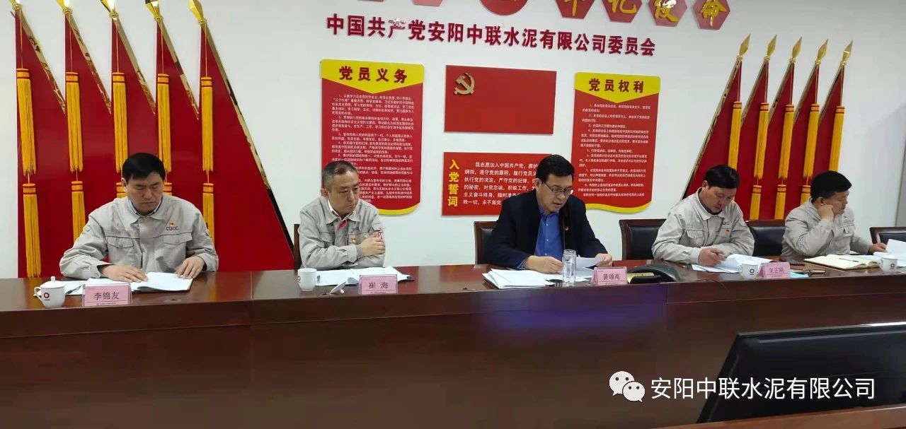 按照中国联合水泥党委关于认真开好2020年度民主生活会通知要求,2月24日上午,安阳k8凯发2020年度党员领导班子民主生活会在公司党员活动室召开。中国建材股份党委常委、执行董事、副总裁,中国联合水泥党委书记、董事长崔星太通过视频连线督导会议并作点评讲话。中国联合水泥党群工作部主任侯萍、纪检监察室副主任董治及安阳k8凯发党委委员、领导班子成员参加会议。安阳k8凯发党委书记、总经理黄颂高主持会议。